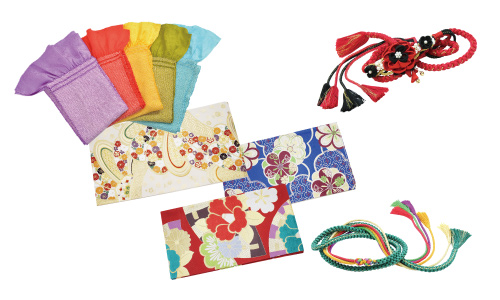 振袖、帯、帯締め、帯揚げ、伊達衿、襦袢、半衿、腰紐 5 本、後輪ベルト、帯枕、伊達締め2本、前帯板、後帯板、三重紐、衿芯、足袋、肌着、草履、バック、振袖お仕立て、振袖湯のし、胴裏、帯お仕立て、たとう紙1枚、衣装箱