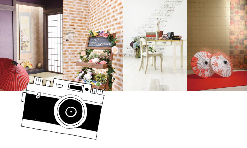 人気写真スタジオプロデュースだから前撮写真が最新の大型スタジオ、おしゃれなセットでモデルスタイル撮影!